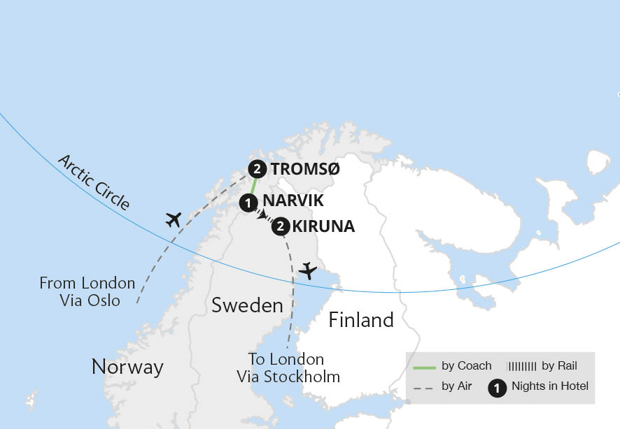 Uncover the extraordinary landscapes and traditional culture of Arctic Norway and Sweden on a journey from Tromsø to Narvik and Kiruna. Meet the indigenous Sámi people and their reindeer and travel into atmospheric Swedish Lapland aboard the Ofoten Railway. Enjoy a husky-hauled sled ride through an enchanting winter wonderland - a magical...