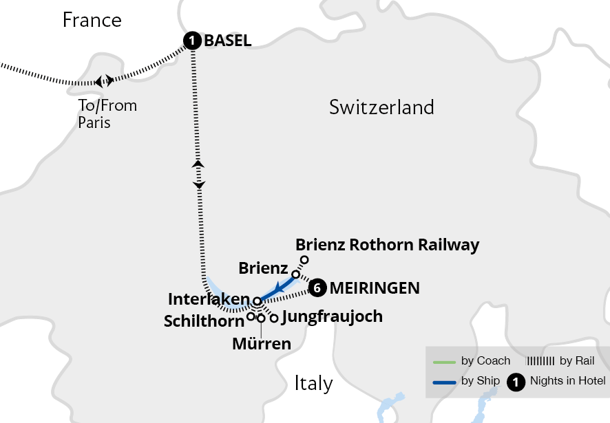 An alpine paradise awaits on this holiday in to the heart of the Swiss Alps, staying in the picturesque village of Meiringen, filled with traditional chalets and impressive vistas. Soak up spectacular Bernese Oberland scenery from Brienz Rothorn Mountain Railway, and climb to the 'Top of Europe' aboard the Jungfrau Railway to savour...