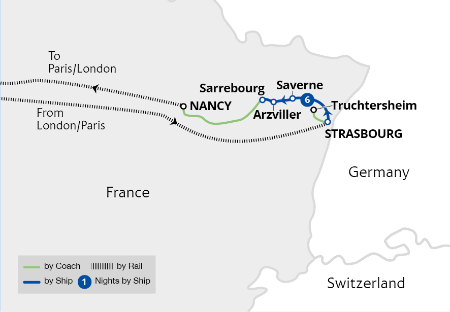 Uncover the treasures of Alscace and Lorraine on this all-inclusive barge cruise, discovering sights that lie off the beaten path, including the historic towns of Saverne and Sarrebourg. Starting in the historic Alsace city of Strasbourg, we sail through ancient waterways on a panoramic boat into picturesque districts, aglow with evening...