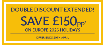 Save £150pp on Europe 2026 holidays, when you book by 20th April 2026.