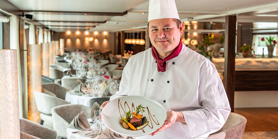 When it comes to cruise dining, every meal is a celebration of local flavours and the spirit of exploration. That's why world-class culinary dishes are included in the price of your holiday with us. Aboard our river cruises, dining becomes an art form, an experience as unforgettable as the scenic landscapes that surround you.