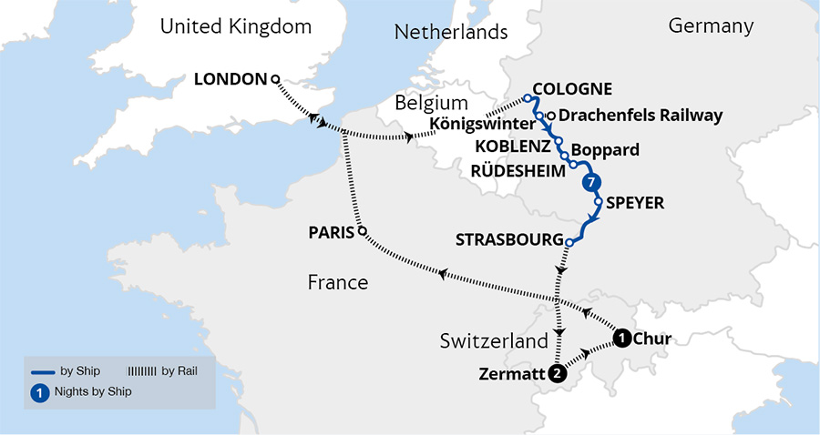 Join us on a stunning rail adventure in beautiful Switzerland - with a trip aboard the iconic Glacier Express - and a 7-night cruise on the magical Rhine and Moselle rivers. Stay in Zermatt, beneath the Matterhorn, then sail past the castles, forests and mythical Lorelei Rock of the stunning Rhine Gorge. Then, ancient Roman ruins sprinkle...