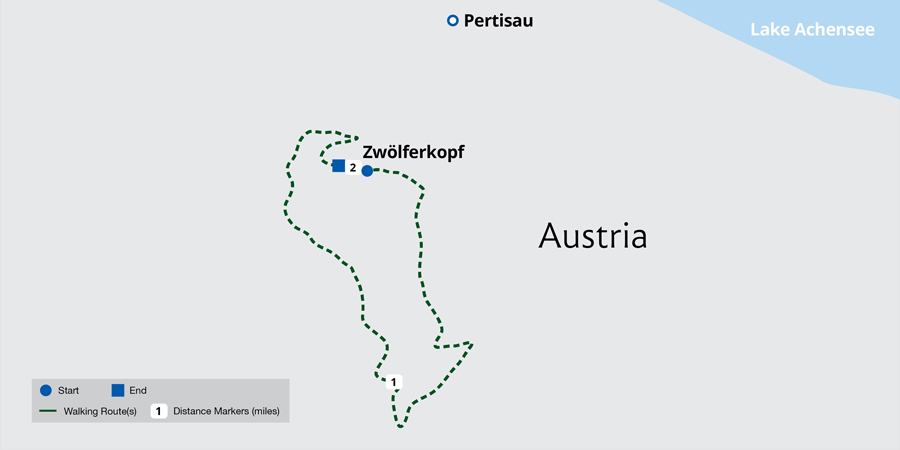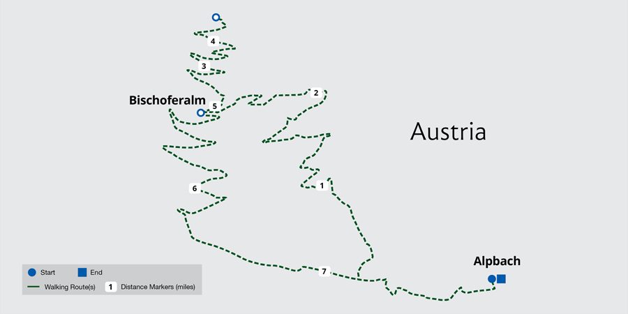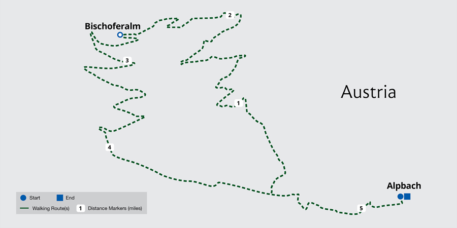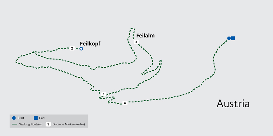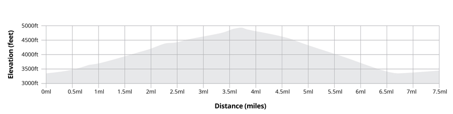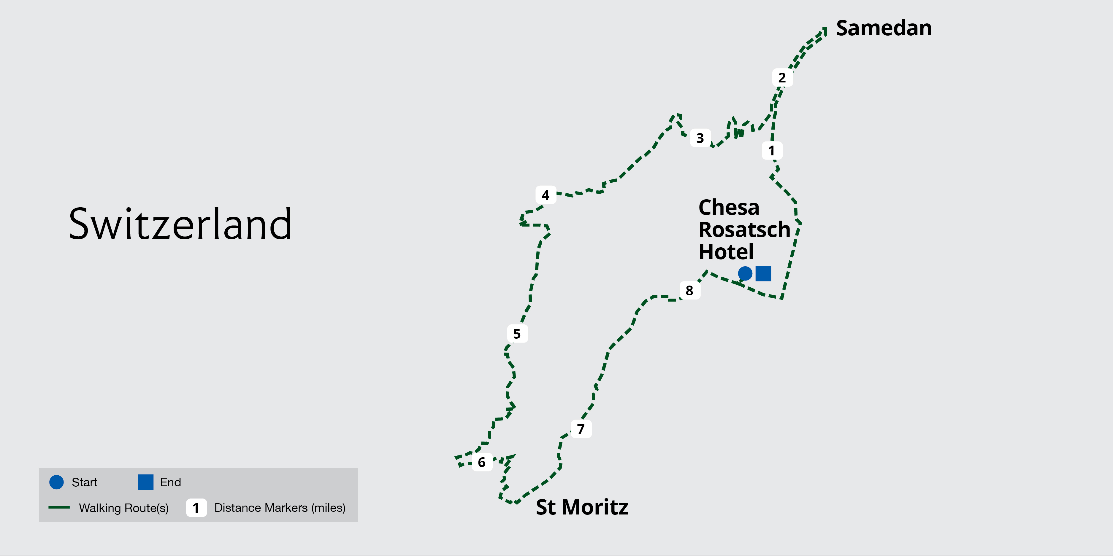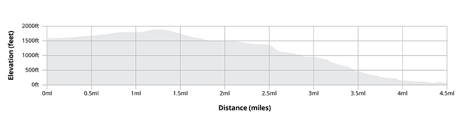 Take care to check the elevation and distances of each map as the scale will vary from walk to walk, depending on the altitude and the amount of ascent and descent.