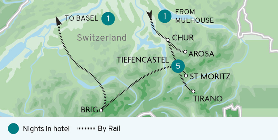 Cloaked in their winter finery, Switzerland's majestic mountains host this rail journey featuring two world-famous trains. From picture-perfect bases in Chur and Täsch, enjoy warm Swiss hospitality in idyllic alpine towns. Bask in stunning views of snow-bound landscapes, soaring mountains and icy glaciers during unforgettable journeys on...