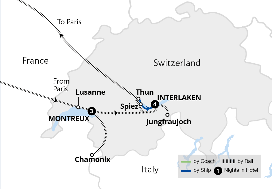 From glittering Montreux to mountainous Interlaken, enjoy an effortless journey on an instantly iconic direct route, passing frozen rivers, icy lakes and picture-perfect winter scenes. Explore Lake Geneva's fairytale Château de Chillon, cross the Alps to Chamonix on the Mont Blanc Express, and travel to Interlaken on the cutting-edge...