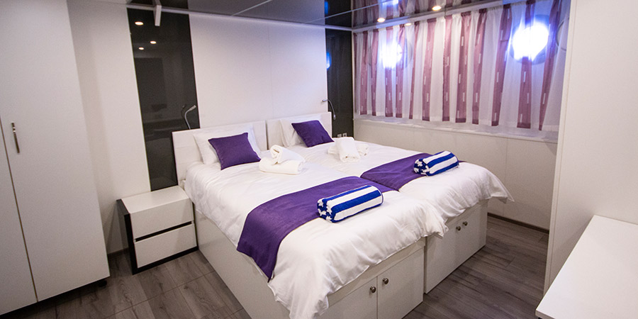The MV San Antonio is an intimate 18-cabin luxury yacht, specifically designed for sea cruising. The stylish cabins are perfect for a good night's sleep - or for taking some much-needed 'me' time whilst sailing, and come equipped with air-conditioning, an LCD television with English channels, and comfortably sized bathrooms.