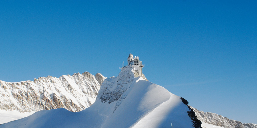 Finally we reach our destination at Jungfraujoch, the highest railway station in Europe, 11,333 feet above sea level. We are still in the mountain as we alight the train. A lift carries us up to the main Jungfraujoch visitor centre. For some, this is a fantastic, futuristic building, somewhere between an astronomical observatory and a space station. For others it is little more than a giant grey monstrosity, a blot on the landscape of this UNESCO World Heritage site.