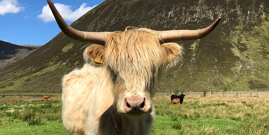 We are exploring in a 4x4, in a part of the world where humans are very much in the minority. In fact, I don't spot another person for most of the day - just nonchalant sheep and curious Highland cattle (inset), which wander up to see if we have any treats, while their teddy-bear calves gambol alongside.