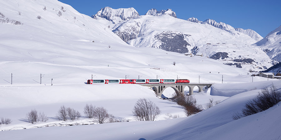 Aboard the trains it's a relaxed affair. Lavish dinners and lunches are served onboard, depending on your ticket, and the general atmosphere is one of slowing down and enjoying the moment. The Glacier Express has panoramic windows that curl up and over the train, reaching to the roof, so passengers get an uninterrupted view of the landscape. It's also the slowest express train in the world, and it takes the train eight hours to travel from Zermatt to St Moritz. The journey goes through 91 tunnels and over 291 bridges. But you don't have to take the full eight hours journey, and escorted trips will typically include part of this journey, spending time in the small towns that dot the route. Train tours like The Classic Glacier Express in Winter and The Traditional Glacier Express in Winter give you the best of train time and time spent within the landscape.