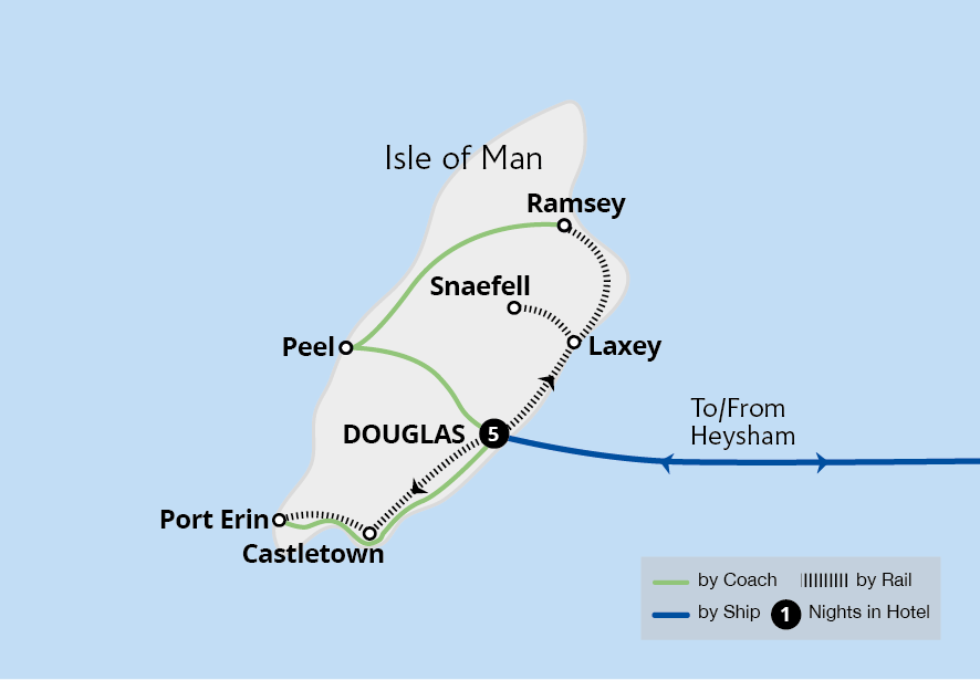 Your Isle of Man holiday starts by meeting the Tour Manager in Heysham, Lancashire. Here, we board the early afternoon ferry to the Isle of Man.