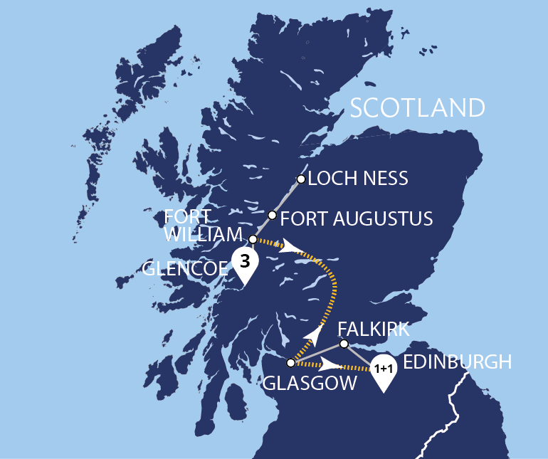 Your festive holiday begins as we meet the Tour Manager at our hotel in Edinburgh. After checking in, there's time at leisure to explore the seasonal atmosphere of the city, all lit up with Christmas lights and decorations.